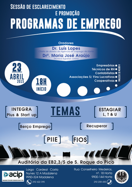 acipA Associação Comercial e Indústrial da Ilha do Pico (ACIP) promove 2 sessões de esclarecimento na ilha do Pico durante os meses de abril e maio:
