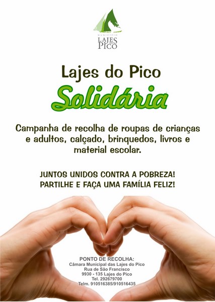 Lajes do Pico Solidária - Campanha de recolha de roupas de crianças e adultos, calçado, brinquedos, livros e material escolar.
