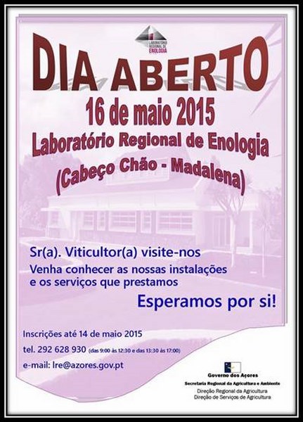 O Laboratório Regional de Enologia, situado no Cabeço do Chão - Madalena, está a promover no próximo dia 16 de maio um dia aberto.