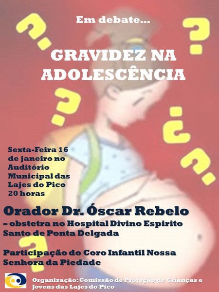 A Comissão de Proteção de Crianças e Jovens das Lajes do Pico organiza na próxima sexta-feira, 16 de janeiro, pelas 20 horas no Auditório Municipal das Lajes do Pico um debate sobre a "Gravidez na Adolescência".