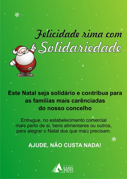 "Felicidade rima com Solidariedade" é a campanha de Natal de angariação de bens promovida pelo Município das Lajes do Pico.