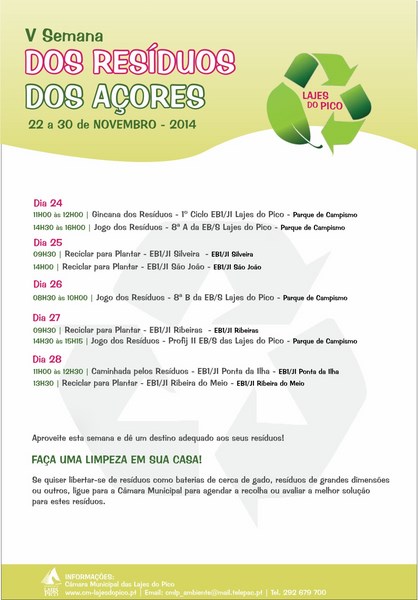 O Governo dos Açores, através da Direção Regional do Ambiente, promove de 22 a 30 de novembro a V Semana dos Resíduos dos Açores.