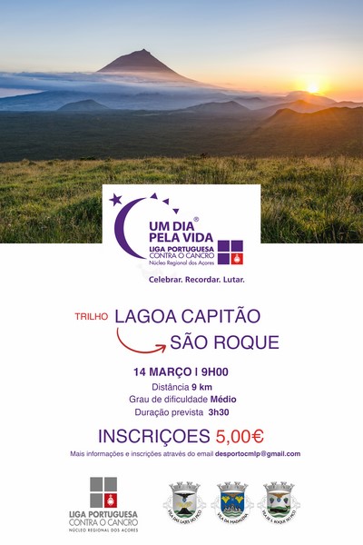O Município das Lajes do Pico, em colaboração com a plataforma "Um Dia Pela Vida", promove no próximo dia 14 de março, pelas 09H00, o trilho "Lagoa do Capitão - São Roque".