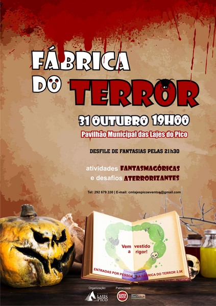 No dia 31 de outubro, pelas 19h00, venha até ao Pavilhão Municipal das Lajes do Pico, participe gratuitamente nas atividades fantasmagóricas e assista ainda ao arrepiante desfile de fantasias que se inicia pelas 21H00.