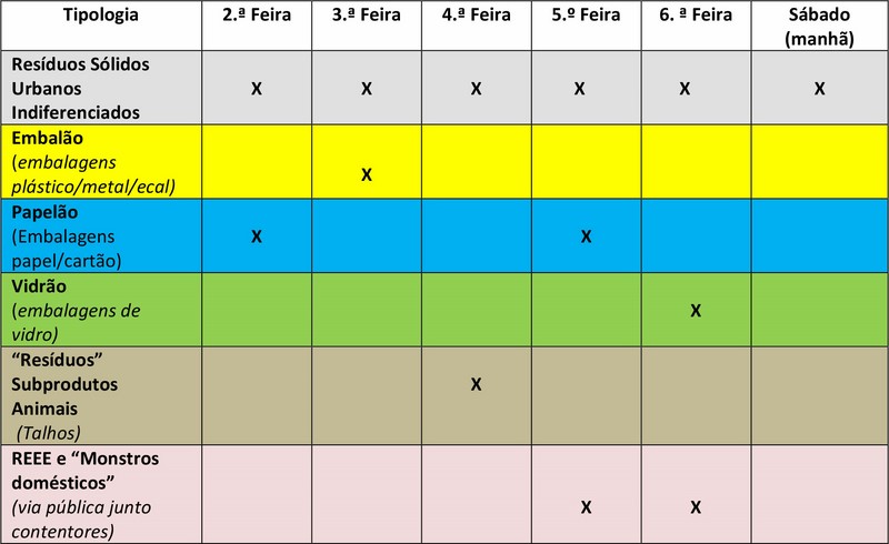 Cronograma de Recolha de Resíduos - Agosto de 2018