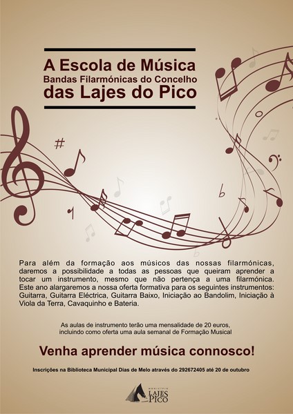 A Escola de Música das Lajes do Pico, para além da formação aos músicos das nossas filarmónicas, dá também a possibilidade de qualquer pessoa poder aprender a tocar um instrumento, mesmo que não pertença a uma filarmónica.