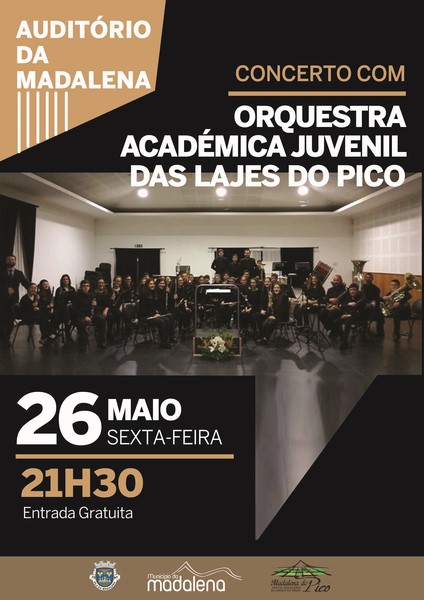 A Orquestra Académica Juvenil das Lajes do Pico realizará um concerto no Auditório da Madalena no próximo dia 26 de Maio, 6 ª feira, terminando um ciclo de concertos pela Ilha.