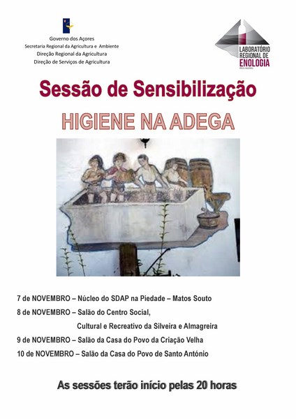 O Governo Regional dos Açores através da Secretaria Regional da Agricultura e Ambiente, da Direção Regional da Agricultura e da Direção de Serviços de Agricultura promove diversas sessões de sensibilização com a temática "Higiene na adega" na ilha do Pico: