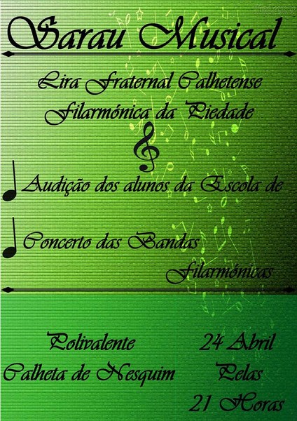 No dia 24 de abril, pelas 21 horas, Sarau musical no Polivalente da Calheta de Nesquim.