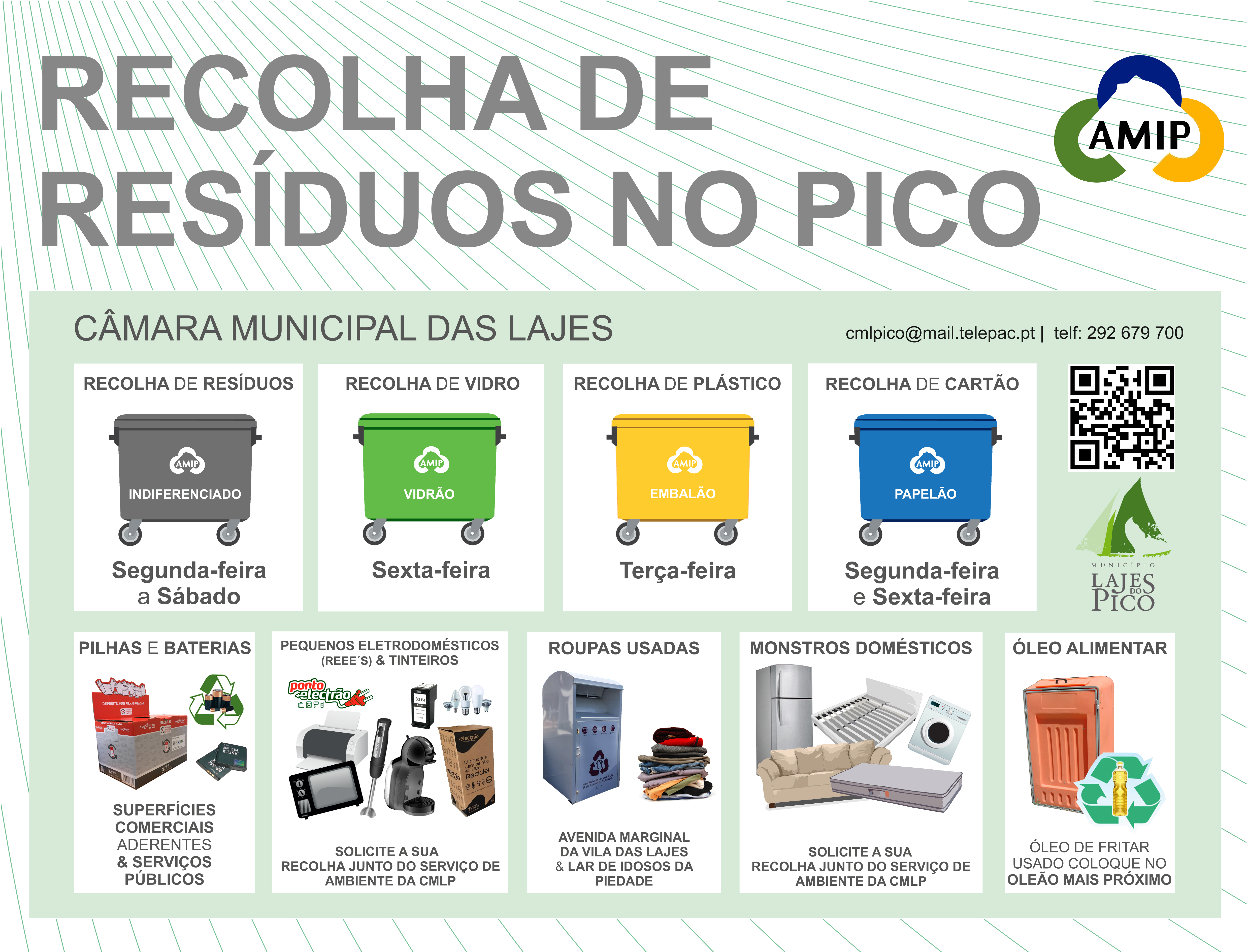 Consulte o cronograma de recolha de resíduos no Concelho das Lajes do Pico e ajude-nos a manter o nosso concelho limpo garantindo um melhor futuro.
