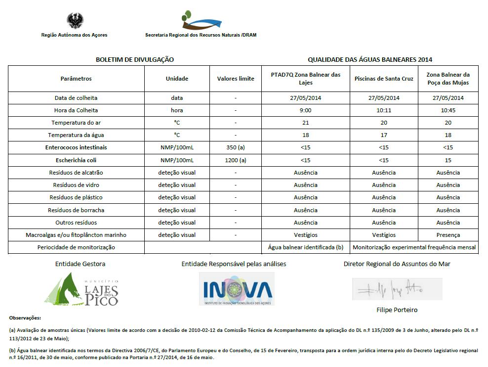 Estão disponíveis os boletins de divulgação da qualidade das águas balneares 2014 (1ª volta).