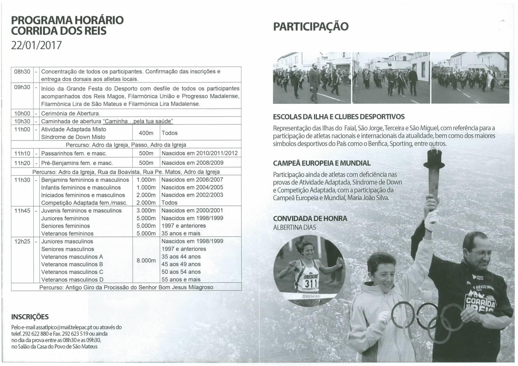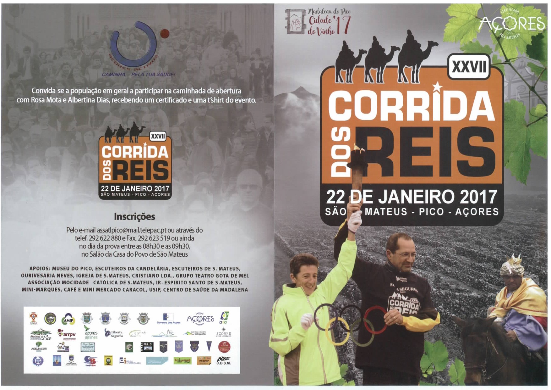 A XXVII edição da Corrida dos Reis, evento organizado pela Associação de Atletismo do Pico, realiza-se domingo, 22 de janeiro de 2017, a partir das 8h30 na freguesia de São Mateus na ilha do Pico.